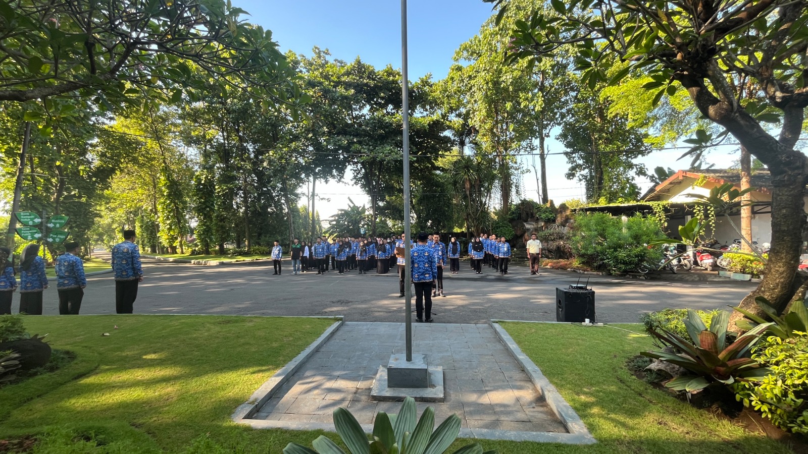 Dalam sambutannya disampaikan bahwa apel Korpri rutin setiap tanggal 17 kembali dilaksanakan sebagai bagian dari upaya memperkuat kedisiplinan serta koordinasi kerja aparatur dalam memberikan pelayanan terbaik kepada masyarakat. Meski berlangsung di tengah suasana bulan suci Ramadan, semangat pengabdian tetap dijaga sebagai wujud komitmen ASN dalam menjalankan tugas sebagai pelayan publik.