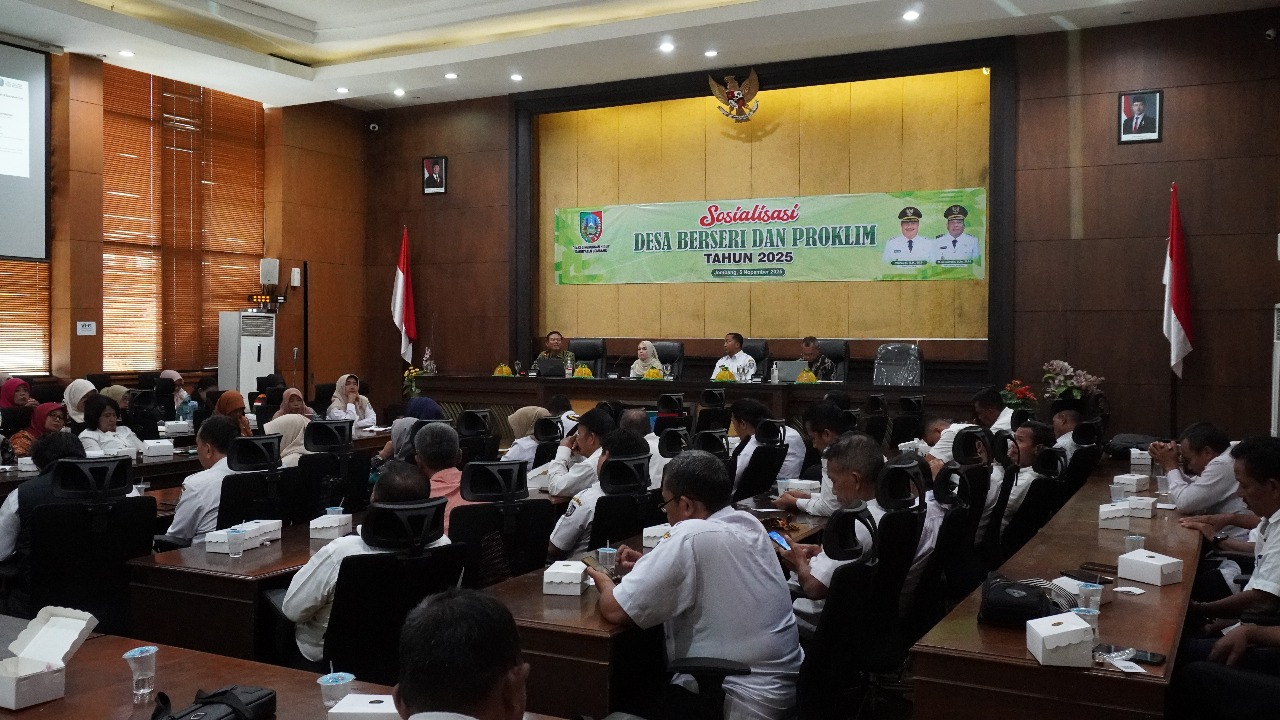 Jombang, 5 November 2025 - Dinas Lingkungan Hidup (DLH) Kabupaten Jombang menggelar kegiatan Sosialisasi Desa Berseri dan Program Kampung Iklim (ProKlim) di Ruang Soero Adiningrat I & II. Kegiatan ini diikuti oleh sebanyak 129 peserta yang terdiri dari perwakilan Tim Penggerak PKK Kabupaten Jombang, sejumlah Organisasi Perangkat Daerah (OPD) terkait seperti Bappeda, DPMD, Dinas Kesehatan, serta Dinas Ketahanan Pangan dan Perikanan. Hadir pula para camat dari Kecamatan Jombang, Tembelang, Peterongan, Jogoroto, dan Diwek, masing-masing membawa 11 kepala desa dan 11 kader lingkungan. Turut hadir pula Direktur Bank Sampah Induk Jombang (BSIJ) sebagai salah satu mitra strategis dalam upaya pengelolaan lingkungan berbasis masyarakat.